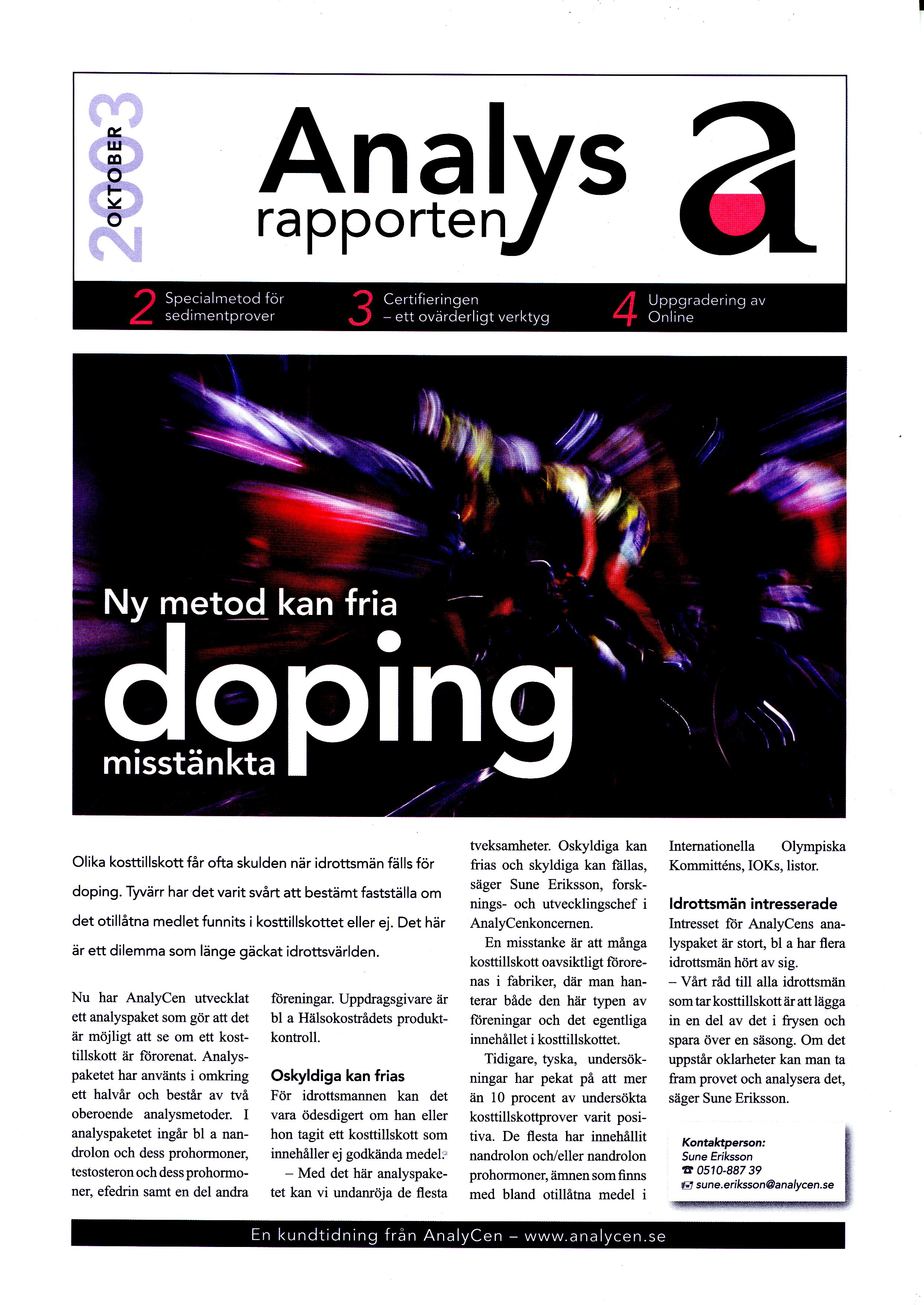 I praksis er det umulig for den enkelte idrettsutøver å vite om et kosttilskudd er dopingfritt eller ikke. Der er ingen som kan gi noen garantier fra de offisielle organer og det er hver enkelts ansvar hva en spiser og drikker. Den enkelte kan heller ikke be om å få utført dopinganalyser til eget bruk gjennom de offisielle organer i Norge.